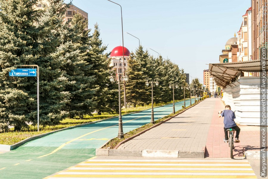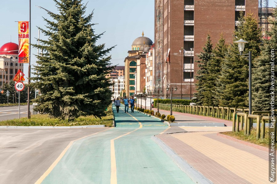 Думаете, эта ситуация исправится, если построить велодорожку через весь город? А вот и нет! Посмотрите на современную велодорожку в городе Магас.