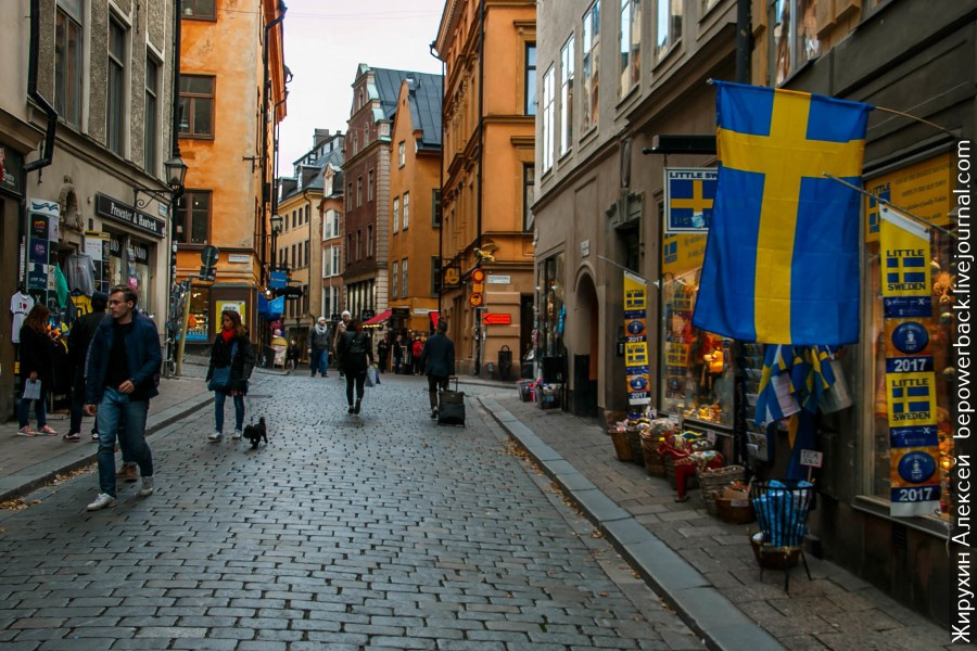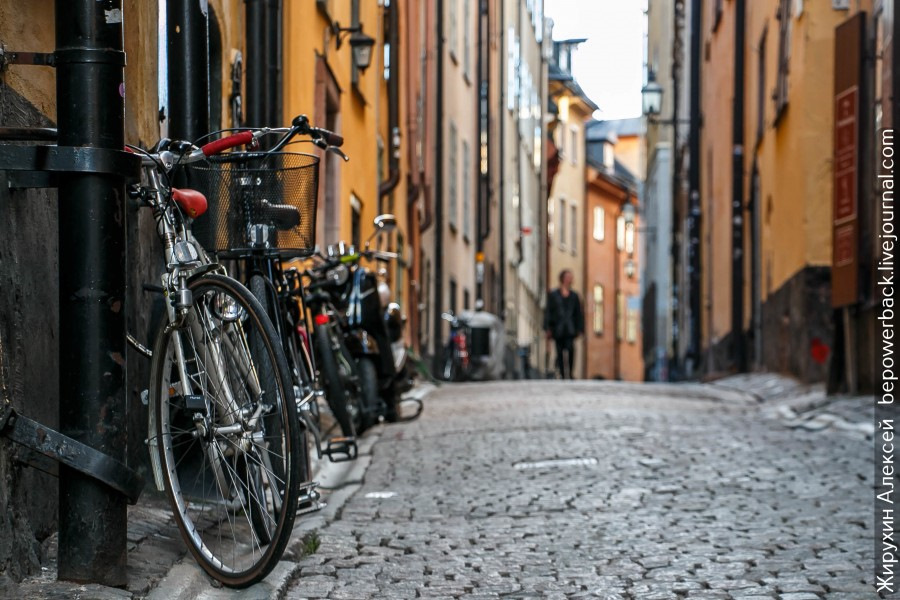 Вы думаете, во всех городах Европы существует сеть велодорожек? А вот и нет. Но это не мешает использовать велосипед как транспортное средство. Это центр Стокгольма, он полностью закрыт для автомобильного движения. Видите тут велодорожки?