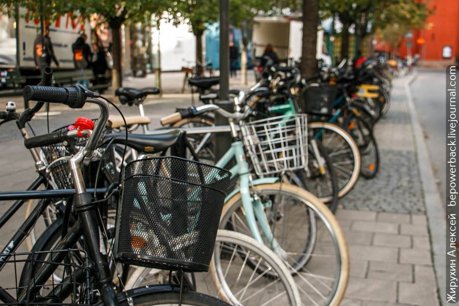 Это тоже Стокгольм, велопарковка. От нее не ведет ни одна велодорожка, но судя по количеству велосипедов это тоже не мешает их использовать.