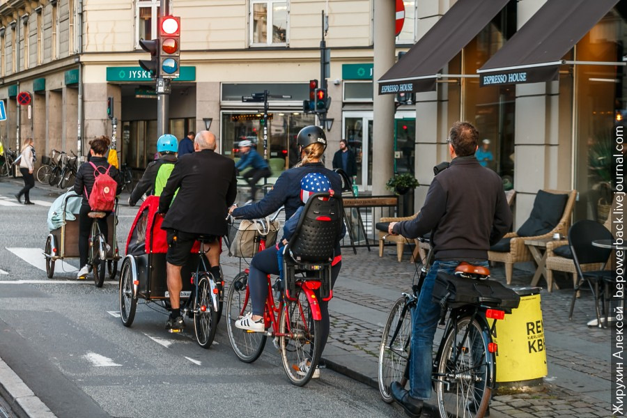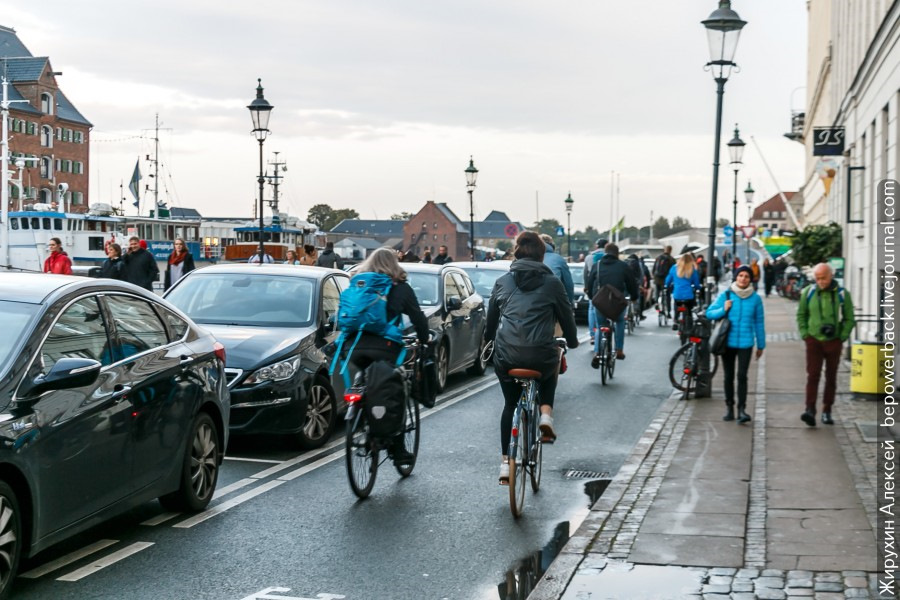 Дания, Копенгаген — город, в котором все сделано в пользу велосипедистов. Треть проезжей части отдана под велодорожку, треть под общественный транспорт и треть под автомобили. Представьте, если бы в вашем городе из 6-ти полосной дороги превратили бы в 2-х полосную?
