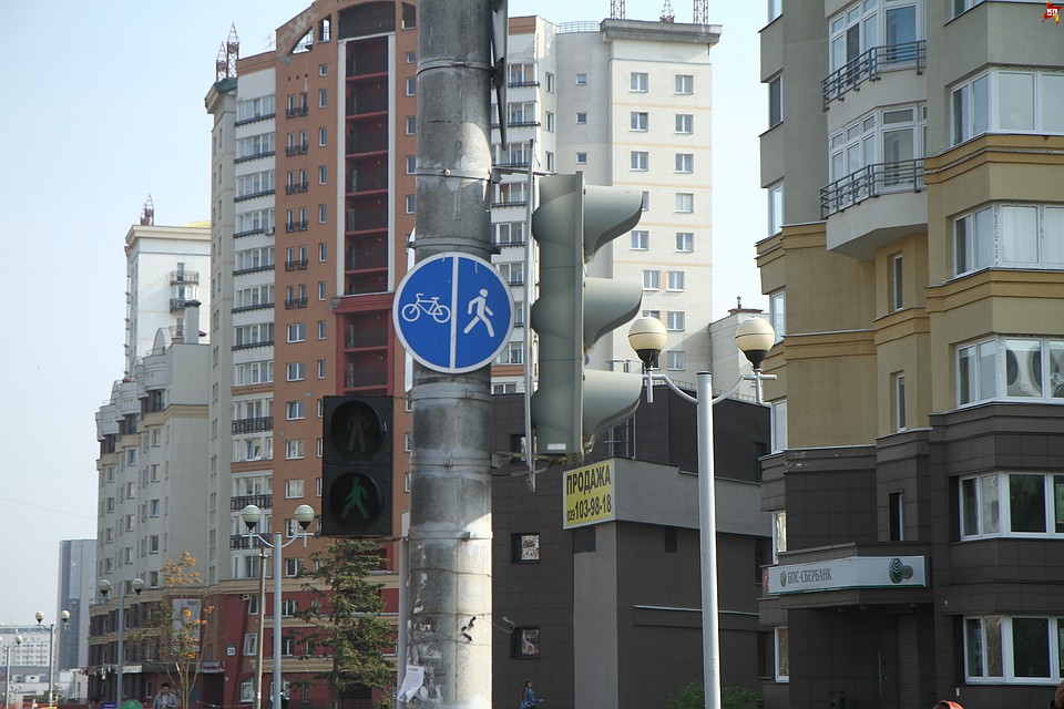 Этот знак говорит о том, что переход предназначен и для пешеходов, и для велосипедистов. ФОТО: РОЛЬСКИТЕ Мария